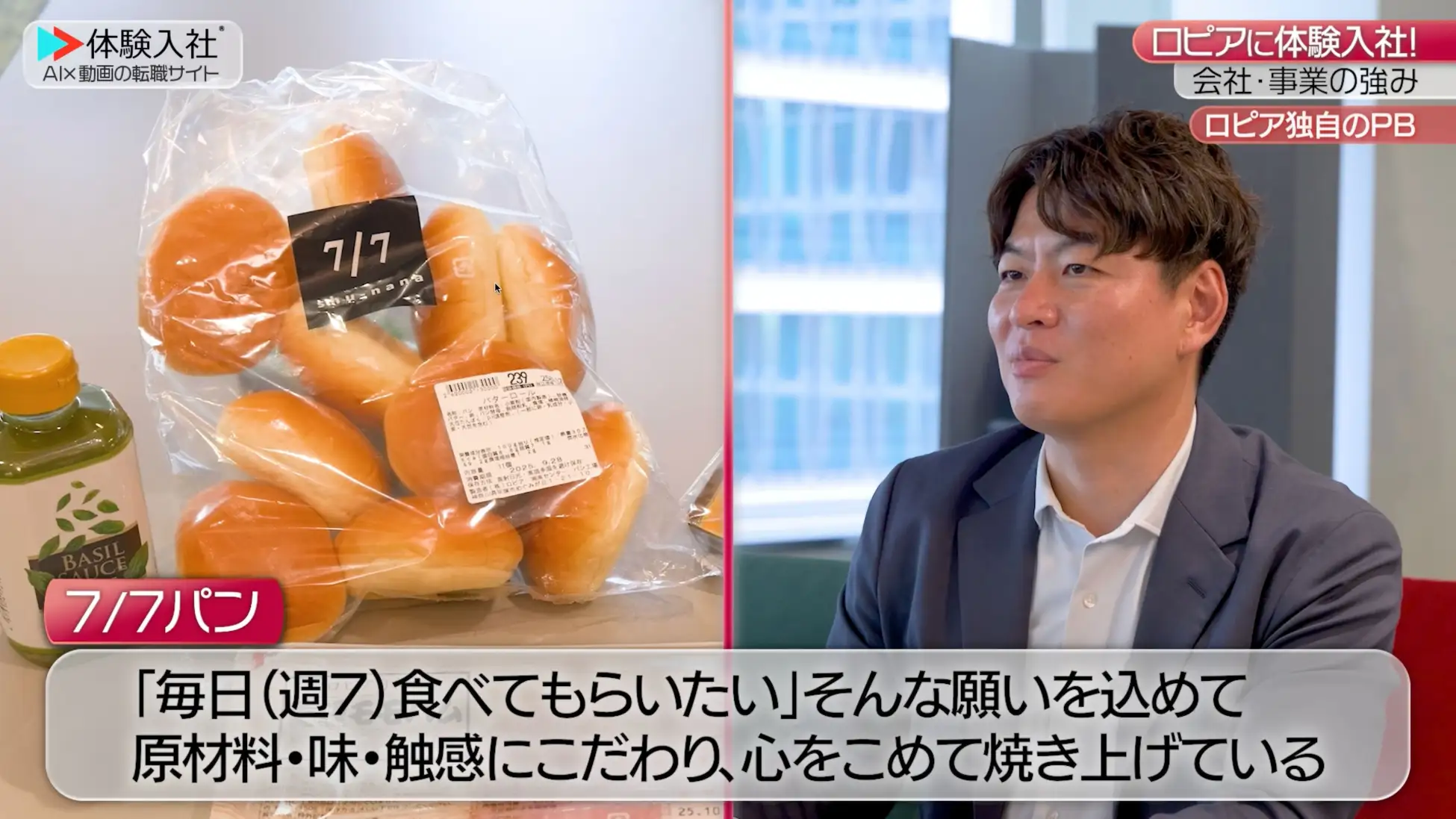 ロピアは、現場主導の経営と、自社グループで製造から手がける独自商品の展開を強みに、『食のテーマパーク』の実現を目指し、「おいしい」「たのしい」「うれしい」体験を提供する企業です。従来の求人情報だけでは伝えきれない「競合他社との差別化」「裁量の大きさ」「商品づくりのこだわり」「仕事とプライベートのバランス」などを、採用動画「体験入社動画」で等身大に発信します。体験入社役のモデルが実際に1日体験入社を行い、“入社後のリアル”を届けます。構成は以下の通りです。
